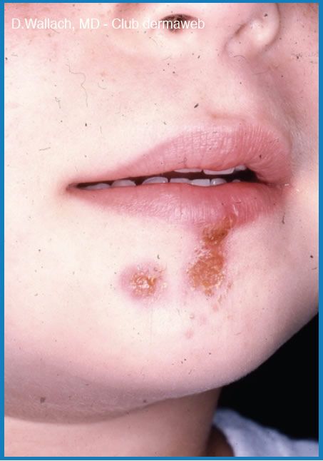 Η περιγραφή ανταποκρίνεται στο πρωτοπαθές Μ.Κ. συχνό στα παιδιά χωρίς κάποιο υποκείμενο δερματολογικό νόσημα που κάνει το δέρμα ευαίσθητο σε δερματικές λοιμώξεις. Η κηριοποίηση αναφέρεται στο δευτεροπαθές Μ.Κ. οπού υπάρχει επιλοίμωξη υποκείμενης δερματοπάθειας όπως ατοπική δερματίτιδα, έκζεμα, ψώρα και πομφολυγώδη νοσήματα. Η κλινική εικόνα είναι βαρύτερη και πιο γενικευμένη .